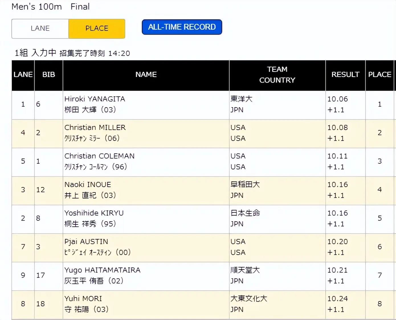 柳田大辉今天夺冠的10秒06刷新了赛季亚洲男子100米最好成绩,目前中国选手本赛季的最好成绩是陆伟一跑出的10秒18,这个成绩排名 本赛季亚洲第13位。